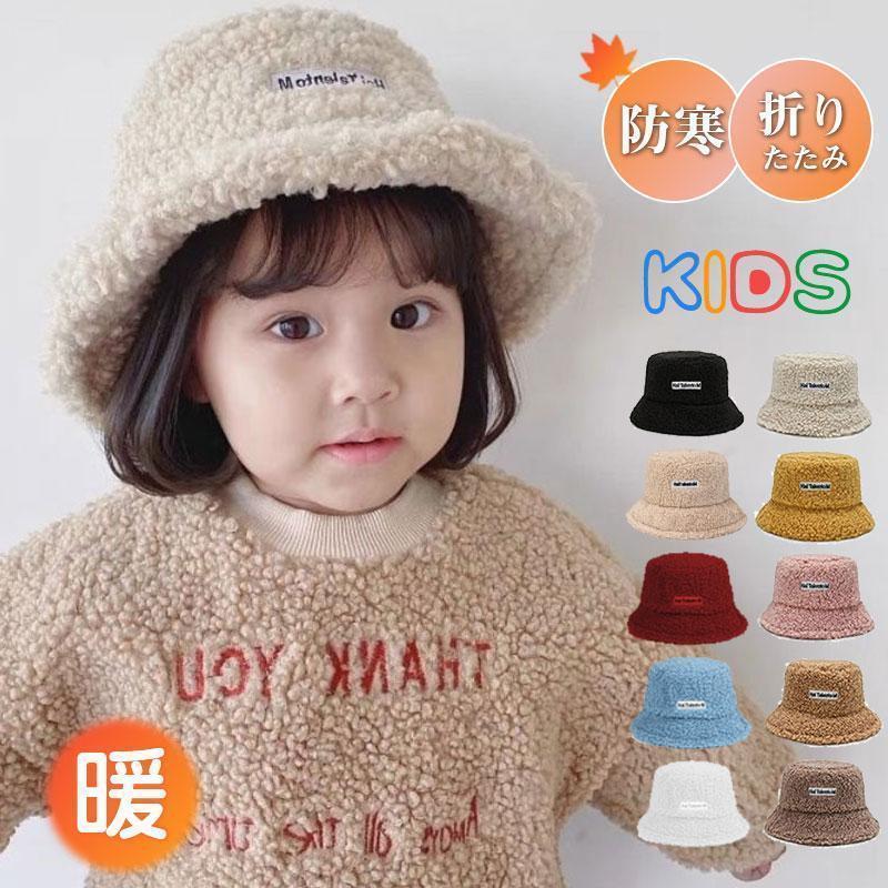 バケットハット 子供用 キッズ ハット 帽子 ボア ファー 秋冬 防寒 もこもこ 暖かい おしゃれ かわいい 折りたたみ ふわふわ 小顔効果
