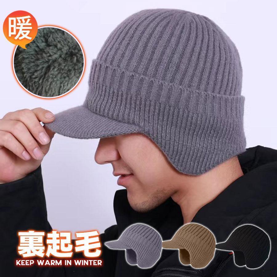 ニット帽 メンズ 耳当て つば付き 帽子 厚手 裏ボア 防寒 暖か キャスケット ニット 秋 冬 男女兼用 キャップ おしゃれ カジュアル 毛糸 男性