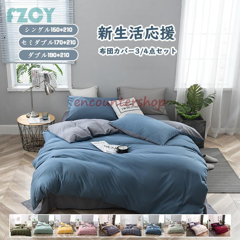 布団カバー ダブル 3/4点セット シーツセット 寝具カバー 枕カバー 通気性 吸湿性 柔らかい 北欧風 無地 洋式和式兼用 ベッド用 四季通用 掛けカバー