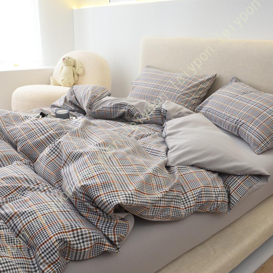 寝具カバーセット 4点セット セミダブル 布団カバー チェック柄 ボックスシーツ 布団カバーセット 春夏秋冬 シングル 3点セット 掛け布団カバー ベッド用品