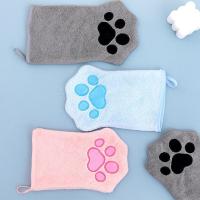 ペット用タオル 単品 片手用 バスタオル ボディタオル 猫 ネコ ねこ 犬 イヌ いぬ 手袋型 グローブ ミトン ループ付き お風呂 体洗い シャワー