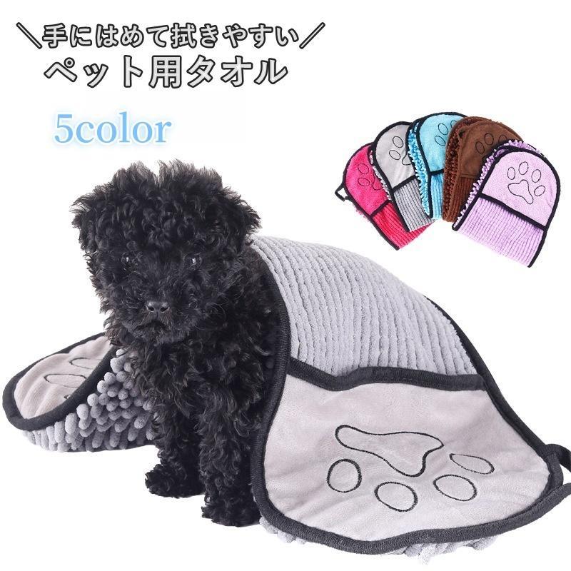 ペット用タオル 吸水タオル 犬 イヌ いぬ 猫 ネコ ねこ ペット用品 バスタオル ボディタオル 手袋 拭き取り ポケット
