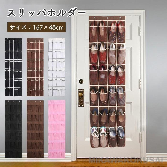ドアに吊り下げるタイプの収納ホルダーです。 穴あけ不要!ドアにフックをかけるだけ! 付属のフックをドアに掛けるだけで取付完了! 24ポケットに仕切られているので、スリッパやパンプスなど12ペアが収納できます。 スリッパや靴などの他に、靴下や、下着、ハンカチ、ネクタイ、トラベル用品など、細々とした衣類小物の整理整頓にも最適です。 メッシュ素材を使用しているので中身が見やすく探しやすく、通気性にも優れています。 ポケットの仕切り部分は二重縫製を施しており、耐久性があります。