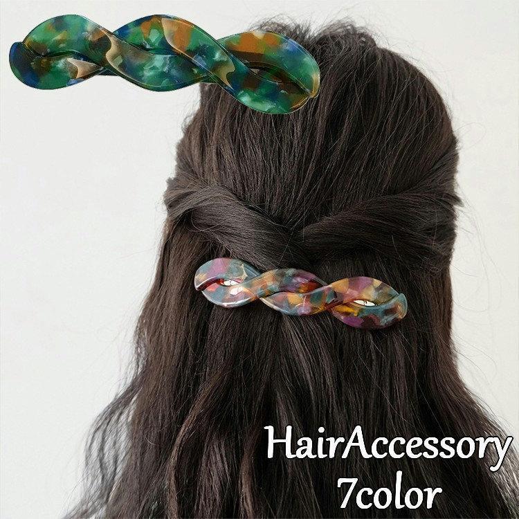バレッタ ヘアクリップ ヘアアクセサリー レディース 髪留め 髪飾り まとめ髪 ヘアアレンジ ツイスト マーブル べっ甲柄 カジュアル オフィス フェ