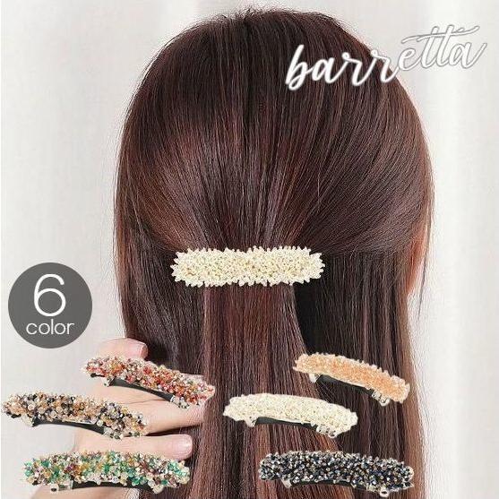 バレッタ ヘアアクセサリー レディース ビーズ キラキラ エレガント 上品 大ぶり 大きめ 大人可愛い 存在感 髪留め 髪飾り まとめ髪 ハーフアップ