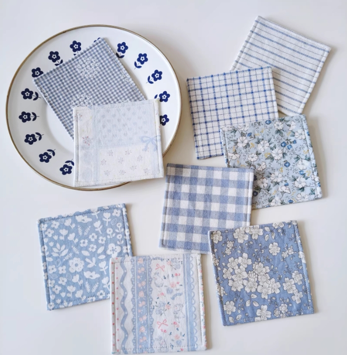 純棉布を使用した、ハンドメイドの布製コースターです。