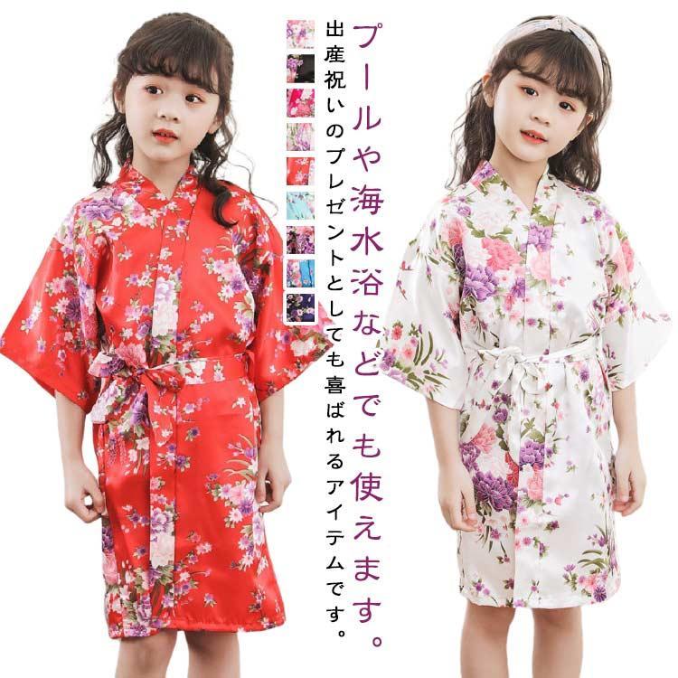 バスローブ ルームウェア 花柄 ナイトローブ 女の子 男の子 子供服 膝丈 ガウン 夏 アイスシルク パジャマ ホテル 温泉 カーディガン 薄手 男女