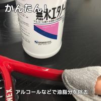 テニスラケットの取り違えもなくなり一石二鳥!貼る場所に付いている脂分をアルコールなどで除去して貼る位置を決めてセロテープで片方を止め、転写シートに文字を移して裏紙を剥がして圧着するだけ、ラッケット以外でも平らな部分なら誰でもゆっくりやれば簡単に貼ることが出来ます。
