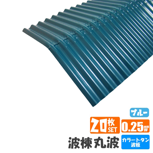 (送料無料) カラー棟板 20枚セット 波棟 カラー:ブルートタン板
