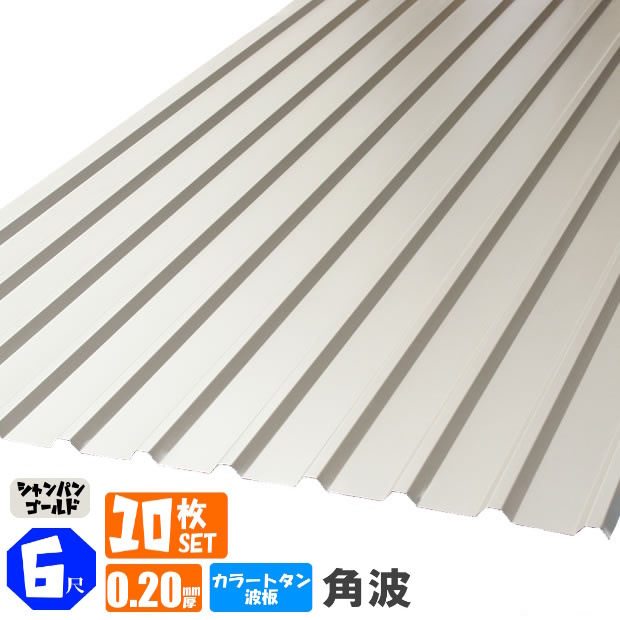 (送料無料) カラートタン波板 10枚セット 角波 6尺(1820mm) 厚み:0.20mm カラー:シャンパンゴールド トタン板