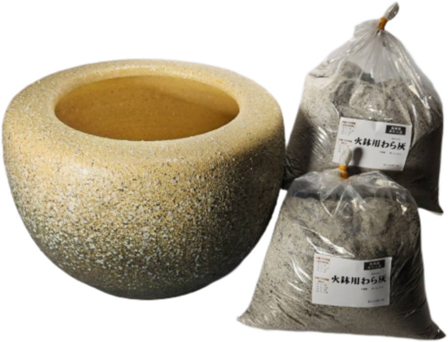 白砂火鉢 15号 本わら灰付き(信楽焼・陶器・暖房・火鉢・ひばち・手作り・囲炉裏)