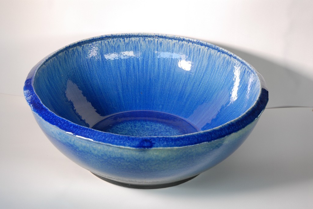 青ガラス浅型水鉢 19号 (信楽焼・陶器・水鉢・メダカ鉢・めだか鉢・金魚鉢・すれん鉢・スイレン鉢・睡蓮鉢・B061-01)