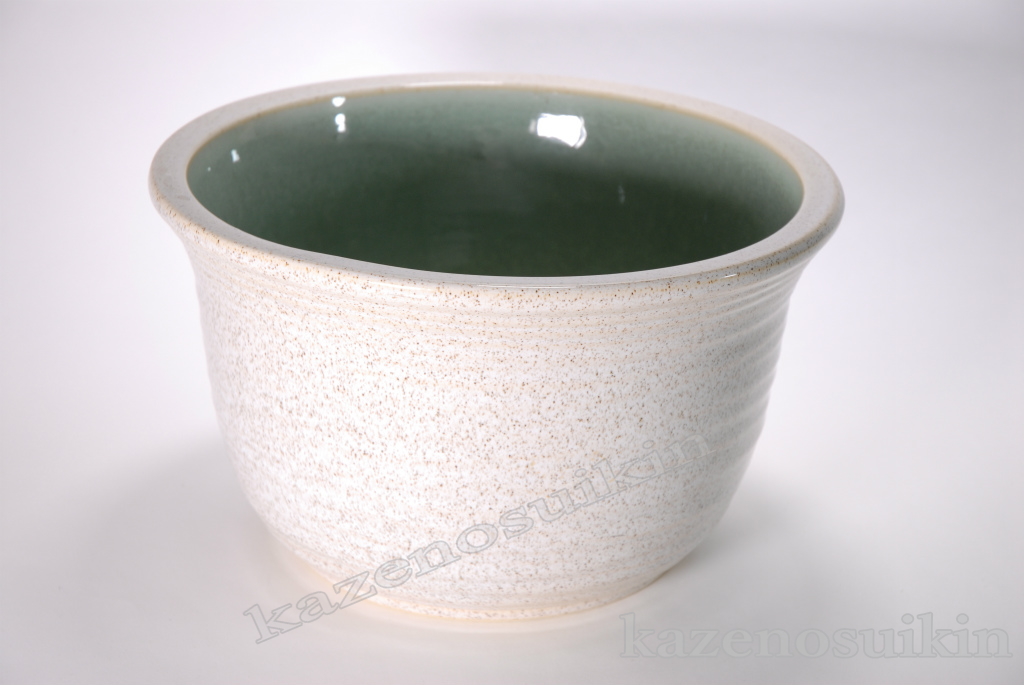 白カスミひねり水鉢 11号/睡蓮鉢(信楽焼・陶器・水鉢・金魚鉢)