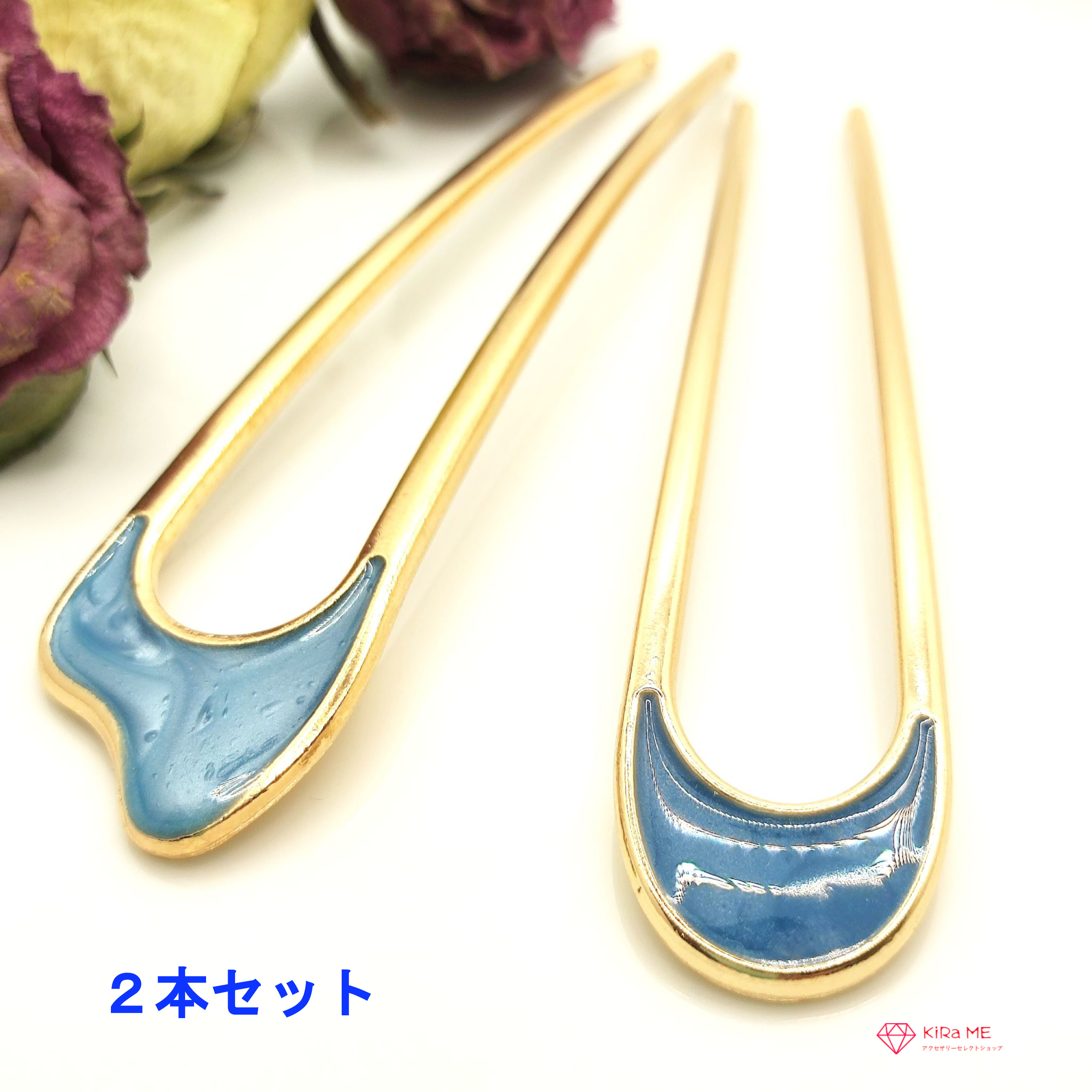かんざし 2本セット u字 藍色 ブルー ヘアーアクセサリー 髪飾り かんざし 結婚式 成人式 卒業式 着物 和装 留袖 浴衣 花嫁 青 シンプル