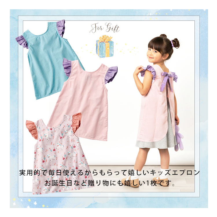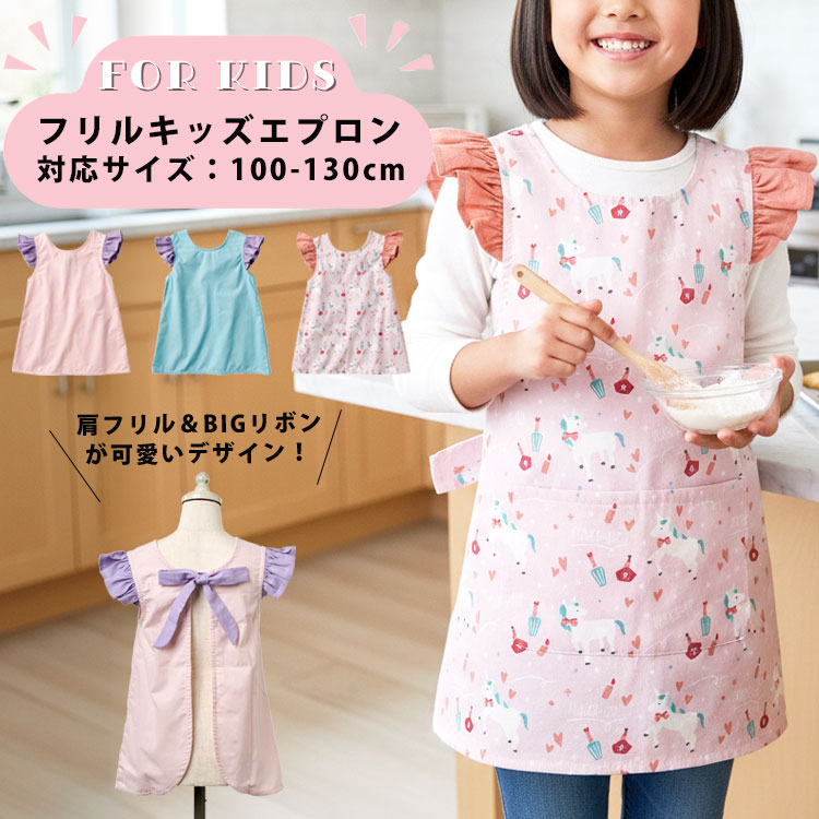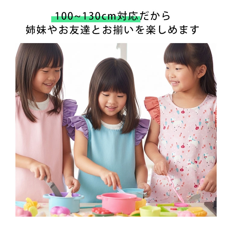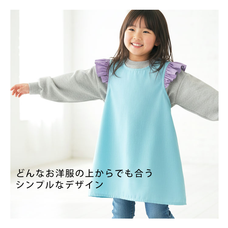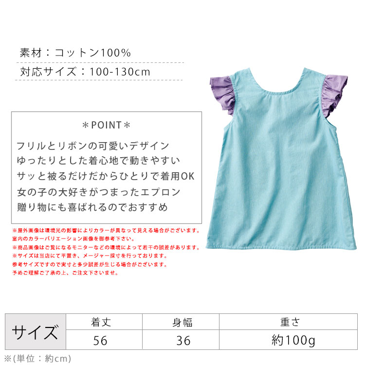 エプロン キッズ 子供 かぶるだけ フリル ワンピース おしゃれ 可愛い 女の子 子供用エプロン 調理実習 給食 保育園 幼稚園 小学校 小学生 100 110 120 130 青