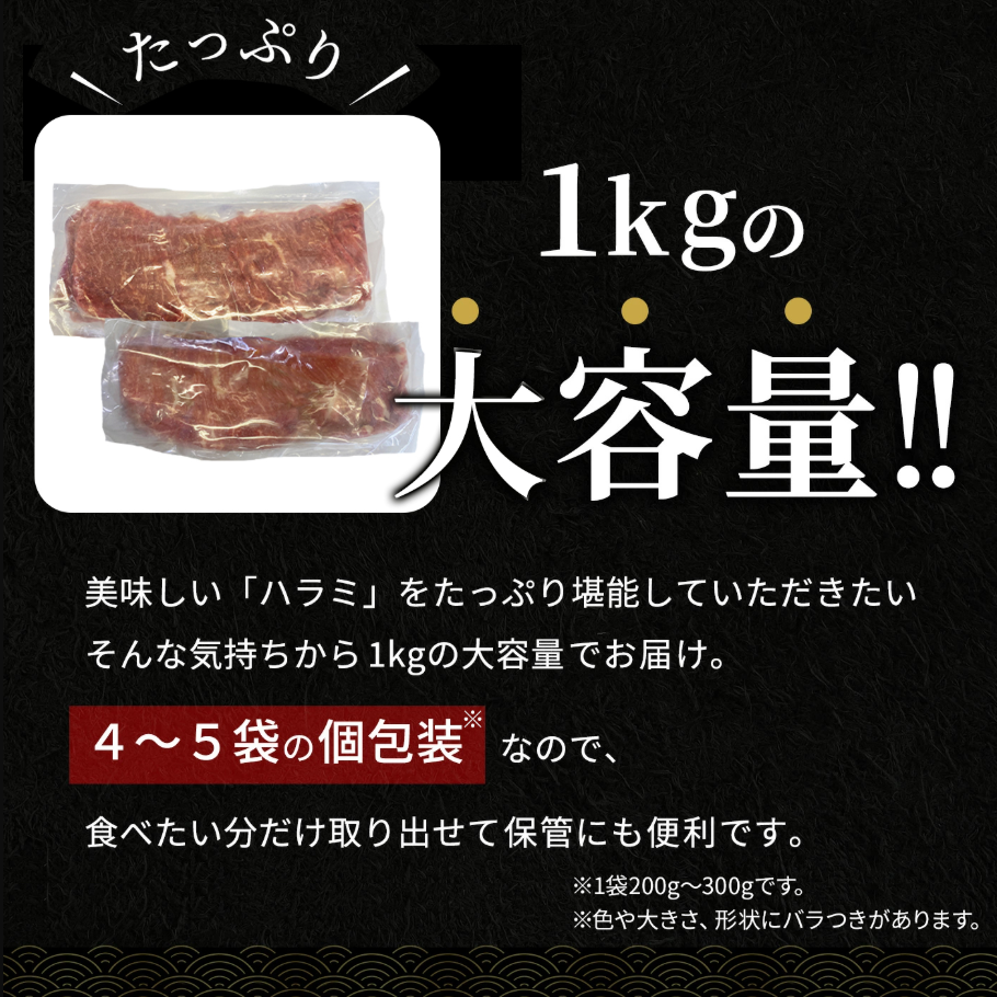 200g〜300gの大きめの真空パックが合計1kg分入った仕様です。