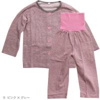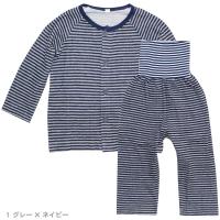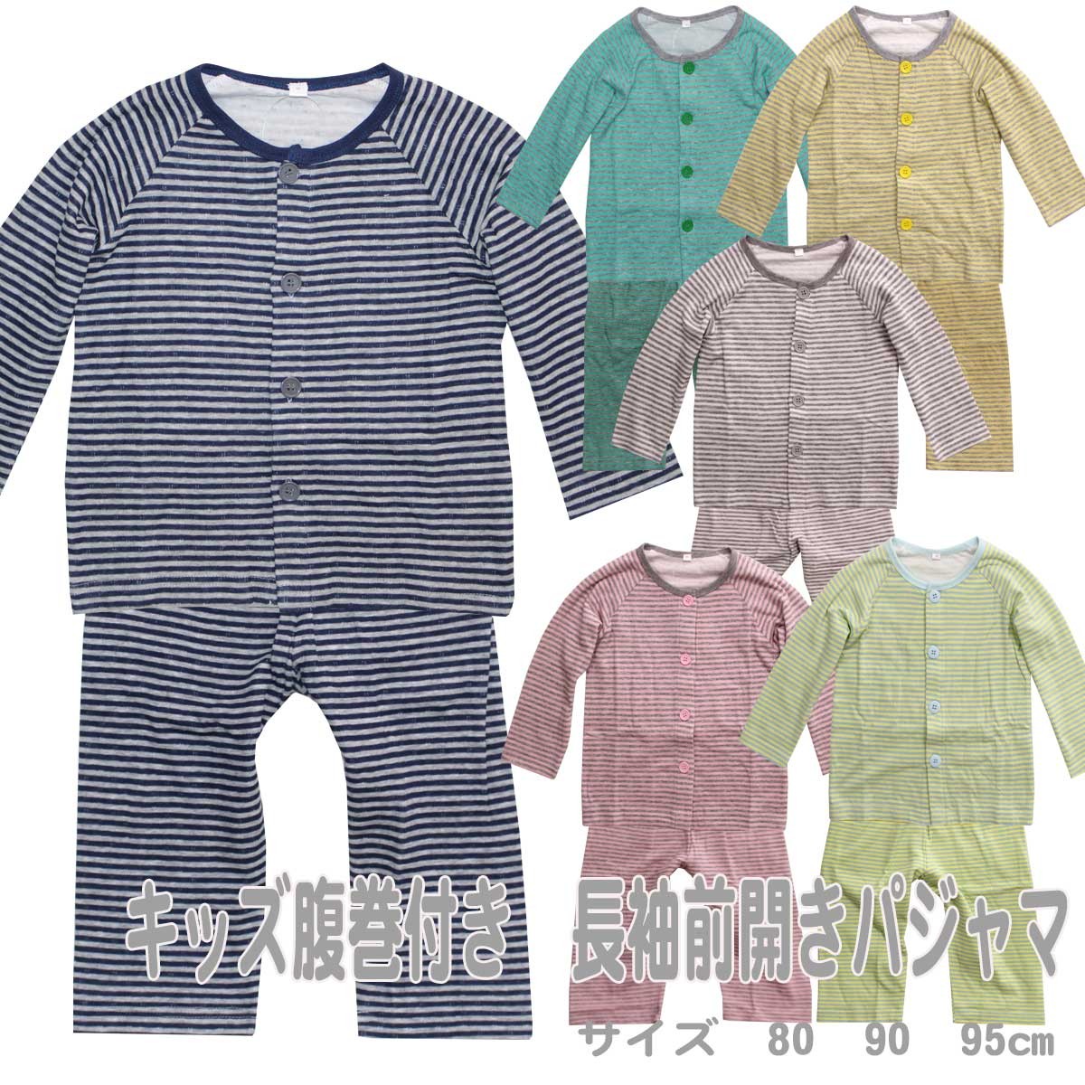 長袖パジャマ ベビー キッズ ハラマキ付 ボーダー 上下組 接結ニット 80cm 90cm 95cm IC170109B