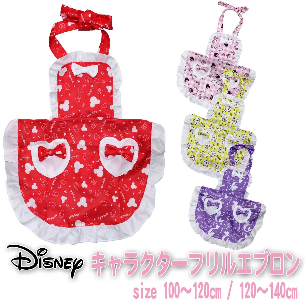 エプロン キッズ フリル エプロン ディズニー リボン フリル 女の子 こども ICD-1801