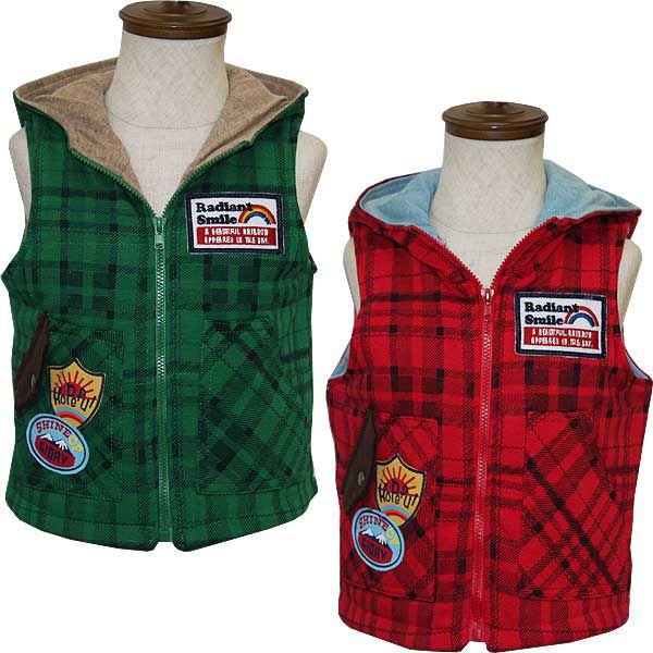 パーカー ベスト ベビー キッズ 中綿 チェック柄 サイズ80/90/95cm PT043600