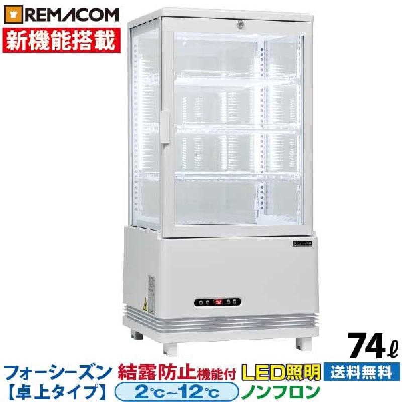 レマコム 4面ガラス冷蔵ショーケース フォーシーズン 卓上・小型 74L R4G-74SLW ホワイト 業務用冷蔵庫