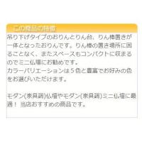 吊り下げタイプのおりんとりん台、りん棒置きが一体となったおりんです。りん棒の置き場所に困ることなく、またスペースもコンパクトに収まるのでミニ仏壇にお勧めです。 カラーバリエーションは5色と豊富でお好みの色をお選びいただけます。