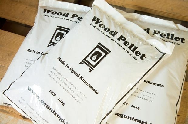 熊本県北部の小国郷の森林で育った杉材から生まれた小国杉のホワイトペレット