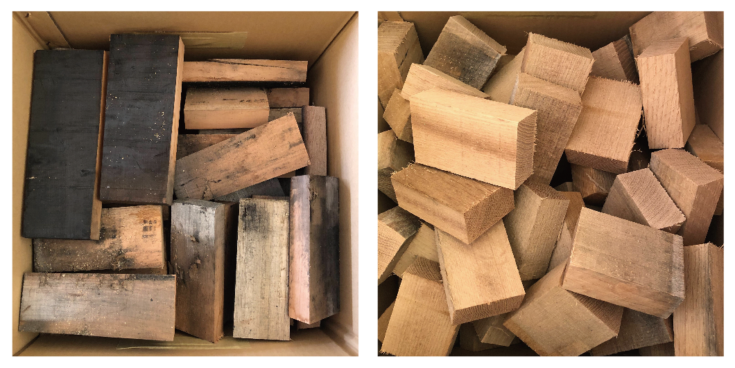 廃棄されるウイスキー樽用の木材を薪として再利用しました。