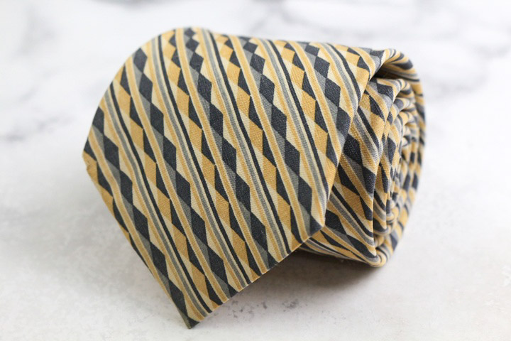 イヴ・サンローラン ブランド ネクタイ YSL ストライプ柄 ダイヤ柄 シルク 日本製 PO メンズ ベージュ YVES SAINT LAURENT