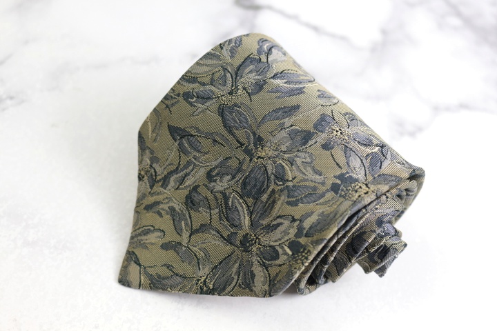 イヴ・サンローラン ブランドネクタイ YSL 総柄 花柄 リーフ柄 シルク PO メンズ カーキ YVES SAINT LAURENT