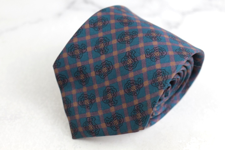 イヴ・サンローラン ブランドネクタイ YSL ペイズリー チェック柄 小紋柄 シルク 日本製 PO メンズ ブルー YVES SAINT LAURENT