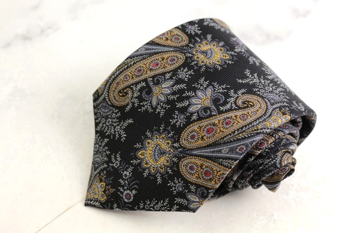 ジル&モートン ブランドネクタイ 総柄 ペイズリー 花柄 幾何学模様 シルク PO メンズ ブラック JILL&MORTON
