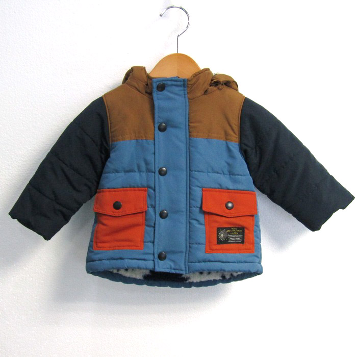 ブリーズ 中綿ジャケット ジャンパー アウター 裏ボア ベビー 男の子用 80サイズ ベージュ×黒×青 BREEZE