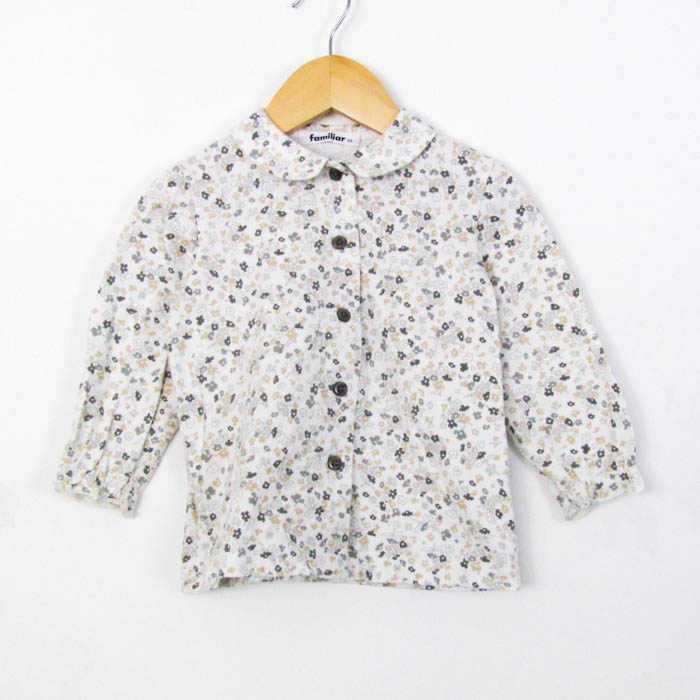 ファミリア 長袖シャツ トップス 花柄 日本製 ベビー 女の子用 90サイズ ホワイト Familiar