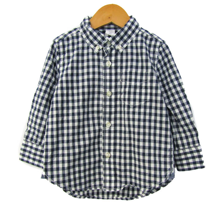 ベビーギャップ 長袖シャツ トップス ギンガムチェック柄 ボタンダウン 未使用品 ベビー 男の子用 90サイズ 紺×白 baby GAP