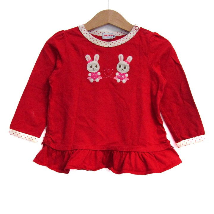 ミキハウス 長袖シャツ 裾フリル うさこ トップス ベビー 女の子用 90サイズ レッド MIKIHOUSE