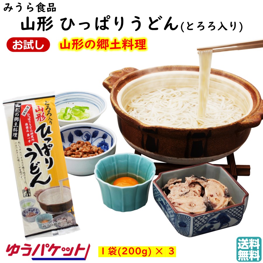 山形 ひっぱりうどん とろろ入り 1袋(200g)×3袋 セット 郷土料理 乾麺 おすすめ おいしい 送料無料 【A01】