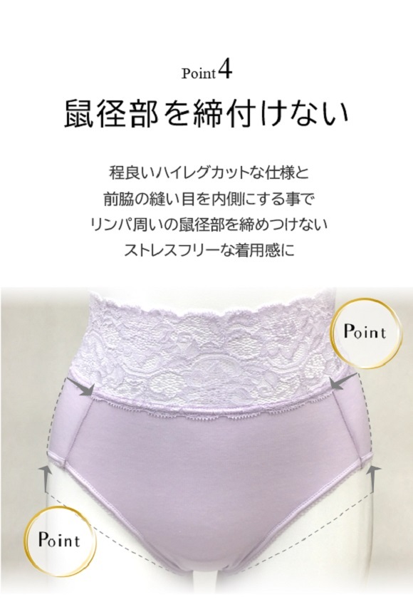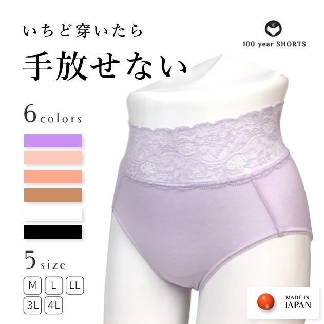 ショーツレディース 40代 50代 綿 高級ベア天竺 深め 安定感 リンパ解放 鼠径部 締め付けない 術後 アウターに響かない レース 日本製 百年ショーツ 100年