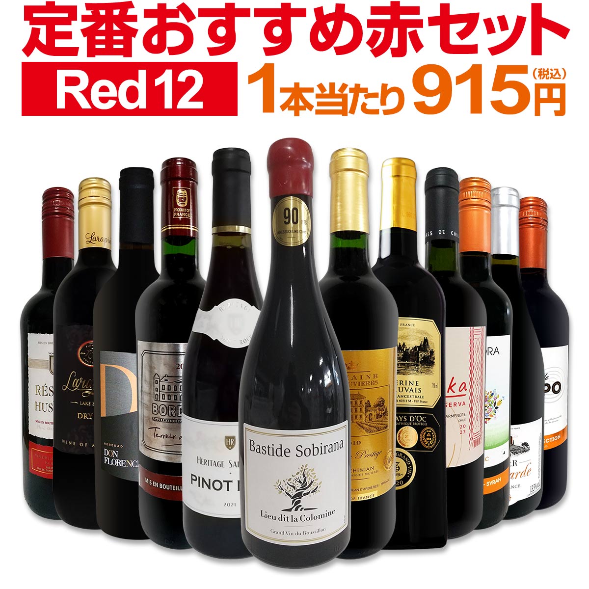 南仏の天才醸造家[ラファージュ]が造る濃厚激旨に、ローマ時代からの歴史を持つ南仏屈指の銘醸地サンシニアンの激旨!!そして!!南仏の有力栽培者協同組合が産みだすピノ・ノワールに、圧巻の4冠金賞★南仏の激旨シラー100%!!スパイシーでしなやかなシラーの魅力を見事に表現!!さらに!!オーク樽3ヵ月熟成!!コスパ抜群のスペイン金賞に、当店独自輸入!!チリの激旨カルメネール100%などなど!!当店厳選赤ワイン12本が勢ぞろい!!思いっきり満喫してください!!