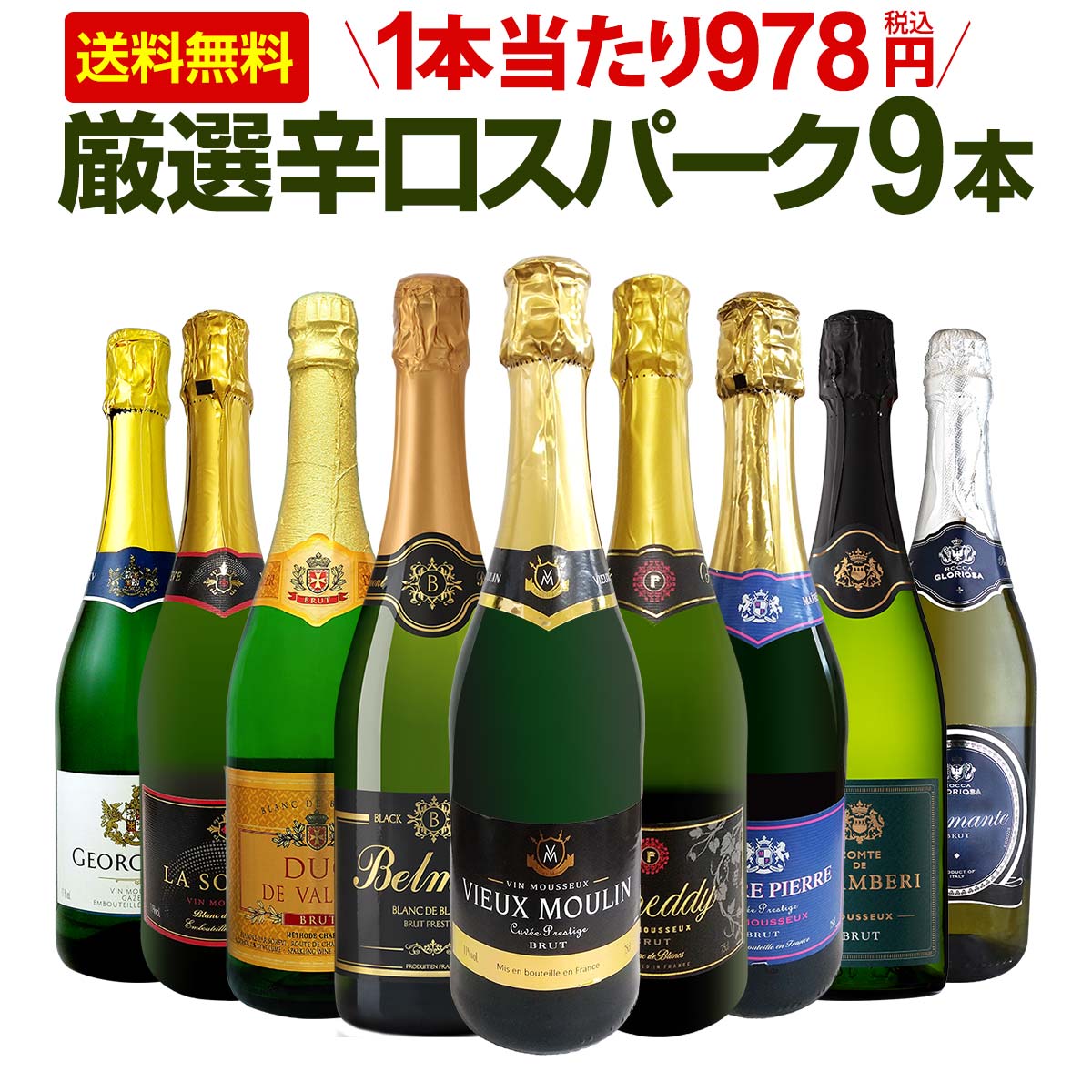 限定スパークリングセット!たっぷり辛口スパークリングが9本!充実感たっぷりの泡祭り!!お買い得スパークリングセットの中でもかなり魅力的な内容と価格でご案内です!泡好きのみなさまお見逃しなく!!