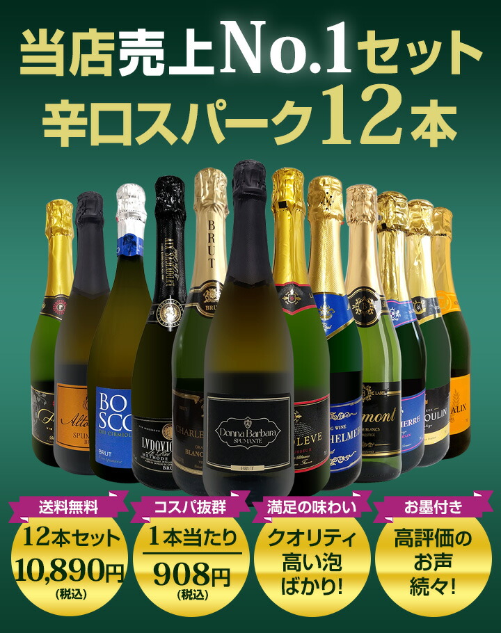 なんと厳選辛口スパークリングが12本で10,890円(税込)!!1本当たり908円(税込)で泡三昧!さらに送料無料なんです!!!