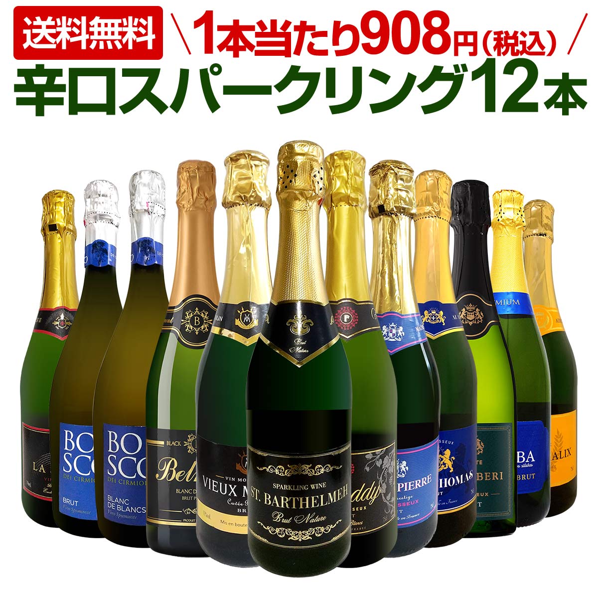 なんと厳選辛口スパークリングが12本で10,890円(税込)!!1本当たり908円(税込)で泡三昧!さらに送料無料なんです!!!
