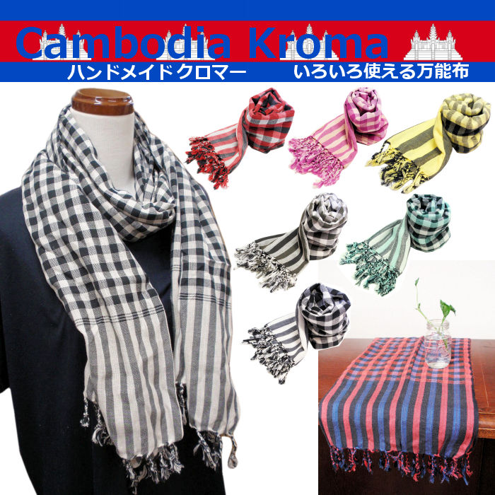 大判 カンボジア クロマー 万能布 手作り ハンドメイド スカーフ 帽子 日よけ 手ぬぐい 風呂敷 インテリア レビューを書いてクリックポスト送料無料