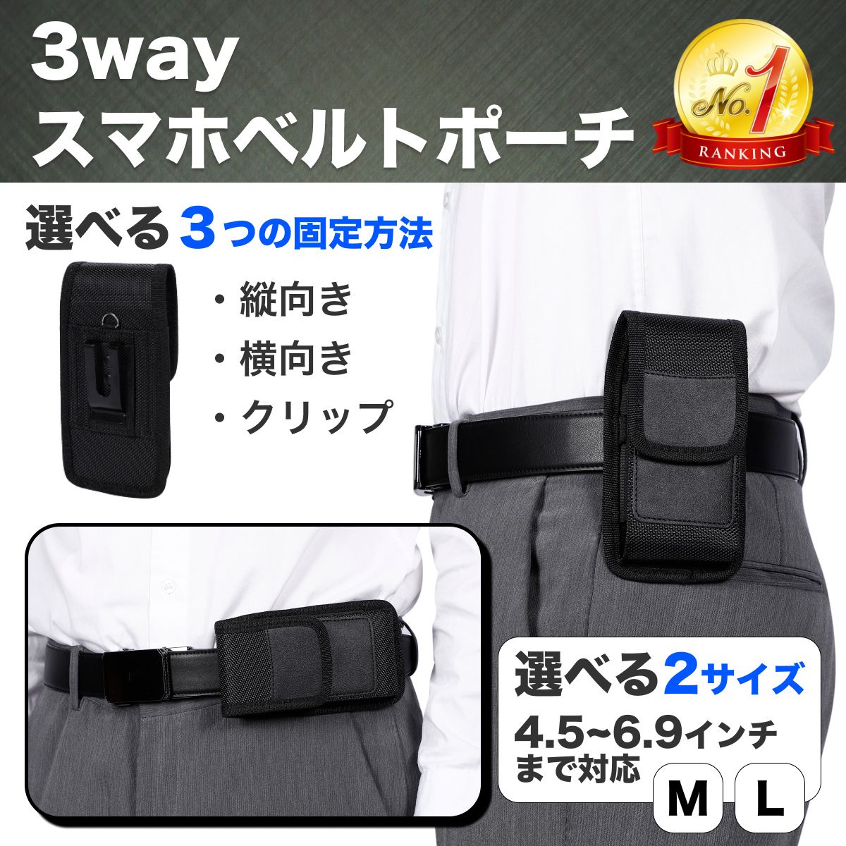 ベルトポーチ スマホ ホルダー ケース メンズ ウエスト 仕事 腰 ベルト通し 横型 カラビナ付