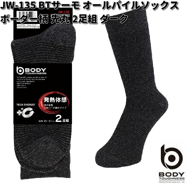 JW-135 BTサーモ オールパイル ソックス ボーダー柄 先丸 2足組 ダーク 25〜27cm JW135 お取り寄せ おたふく手袋 靴下