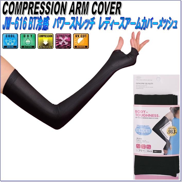 JW-616 BT冷感パワーストレッチ レディースアームカバー メッシュ ブラック OTAFUKU GLOVE 【ネコポス対応品3】【お取り寄せ】