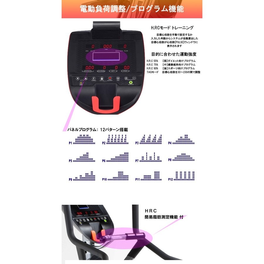 ●パネル表示内容:時間/距離/負荷レベル/カロリー/心拍数/スピード/角度/ワット数