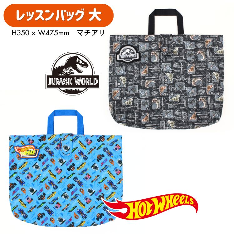 刺繍可 キルトレッスンバッグ大 ワッペン付き マチ付き キッズ 子ども 男の子 ジュラシックワールド ホットウィール 恐竜 車 ミニカー 名入れ