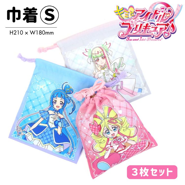 メール便2個以上送料無料 キミとアイドルプリキュア 巾着S 3枚セット コップ入れ 通園 通学 小物入れ 巾着袋 便利袋 キッズ 入園入学 学童用品 巾着 プリキュア