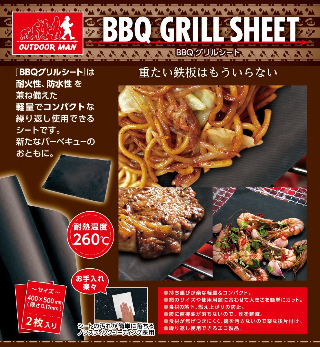 <製品仕様>商品名 | OUTDOOR MAN BBQグリルシート 2枚セット |