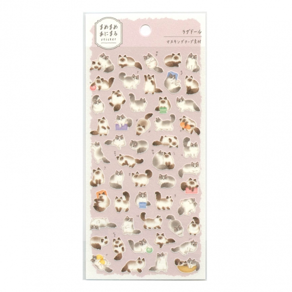 まめまめあにまる ステッカー マスキングテープ素材 ラグドール かわいい 動物 81227
